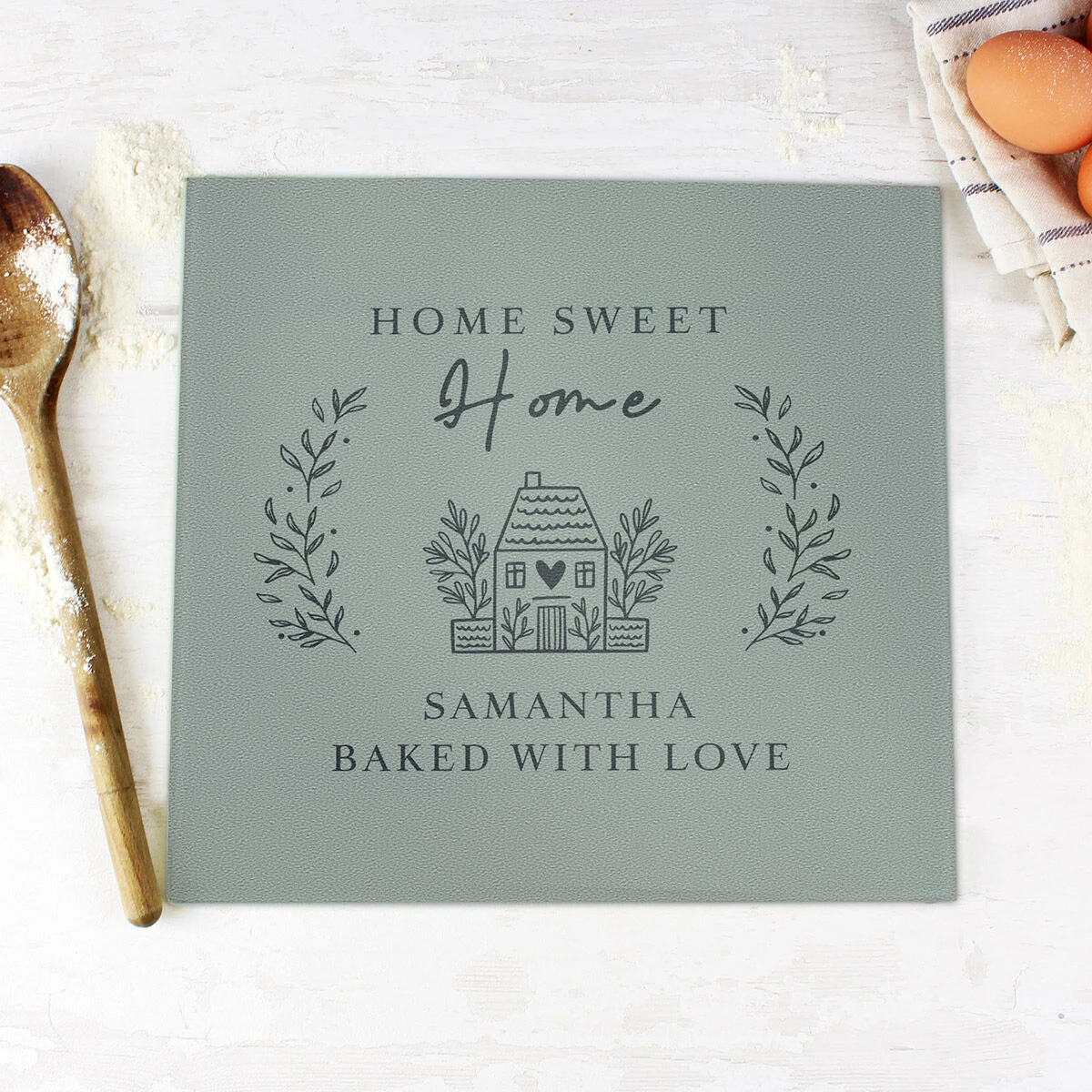 Personalised HOME Glass Chopping Board Worktop Saver