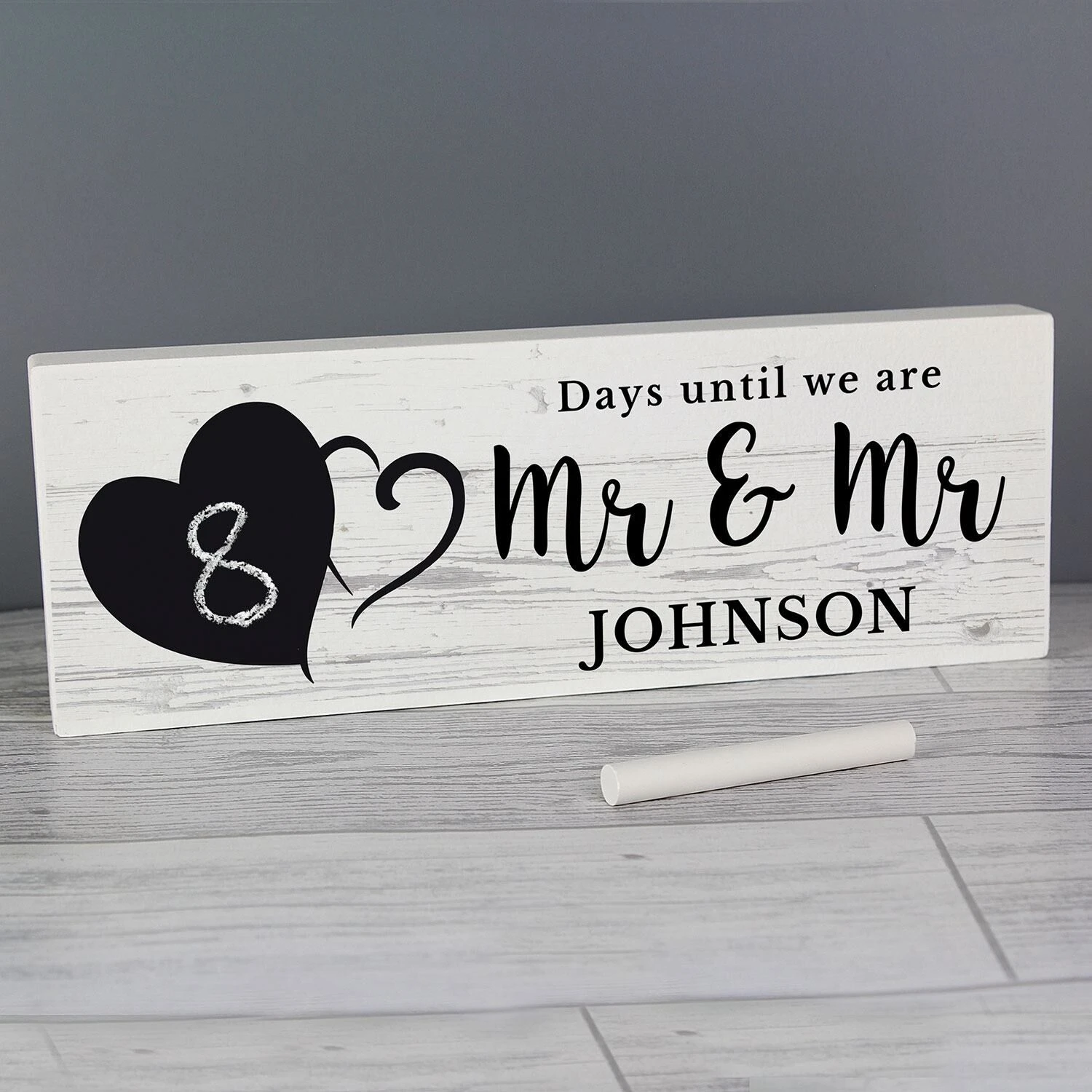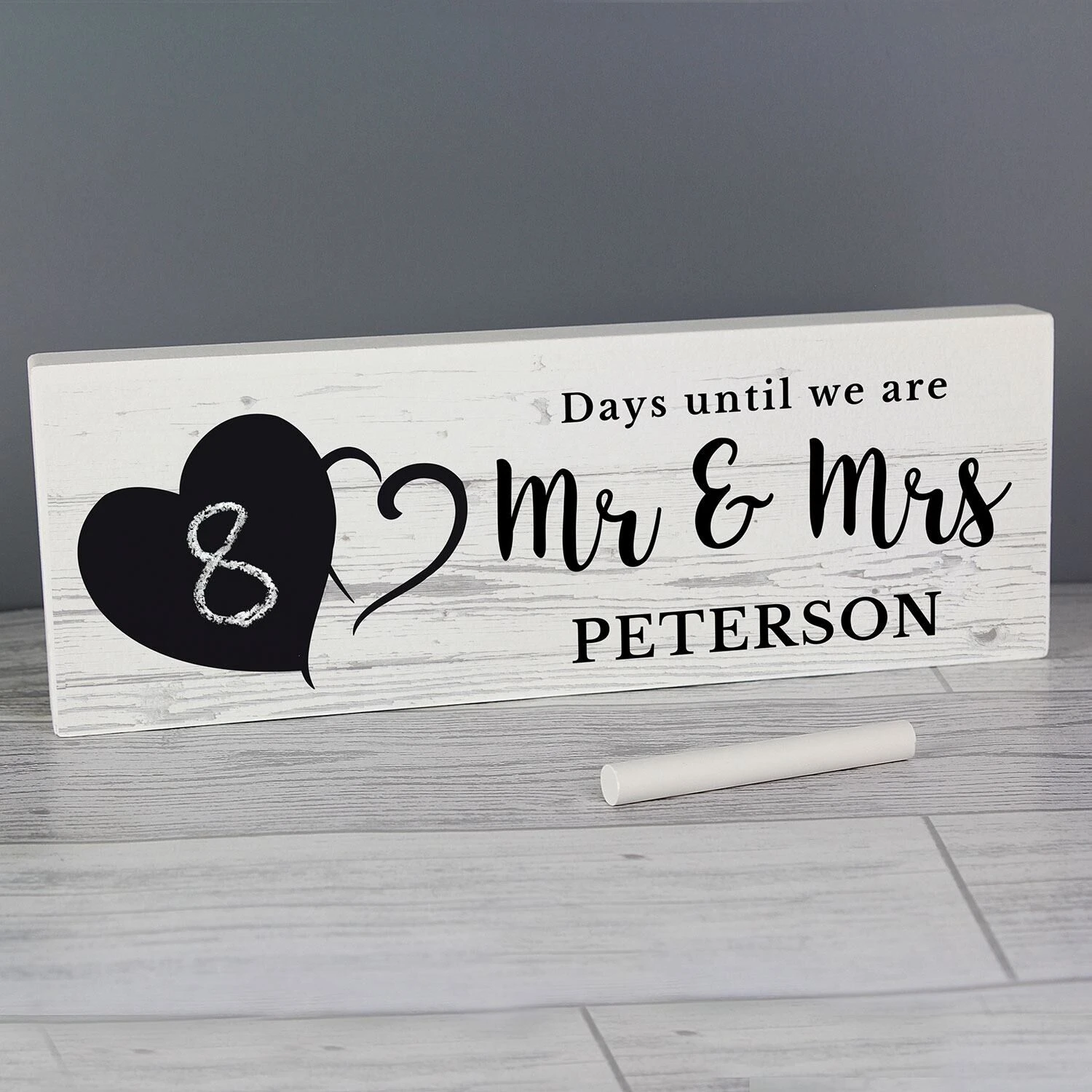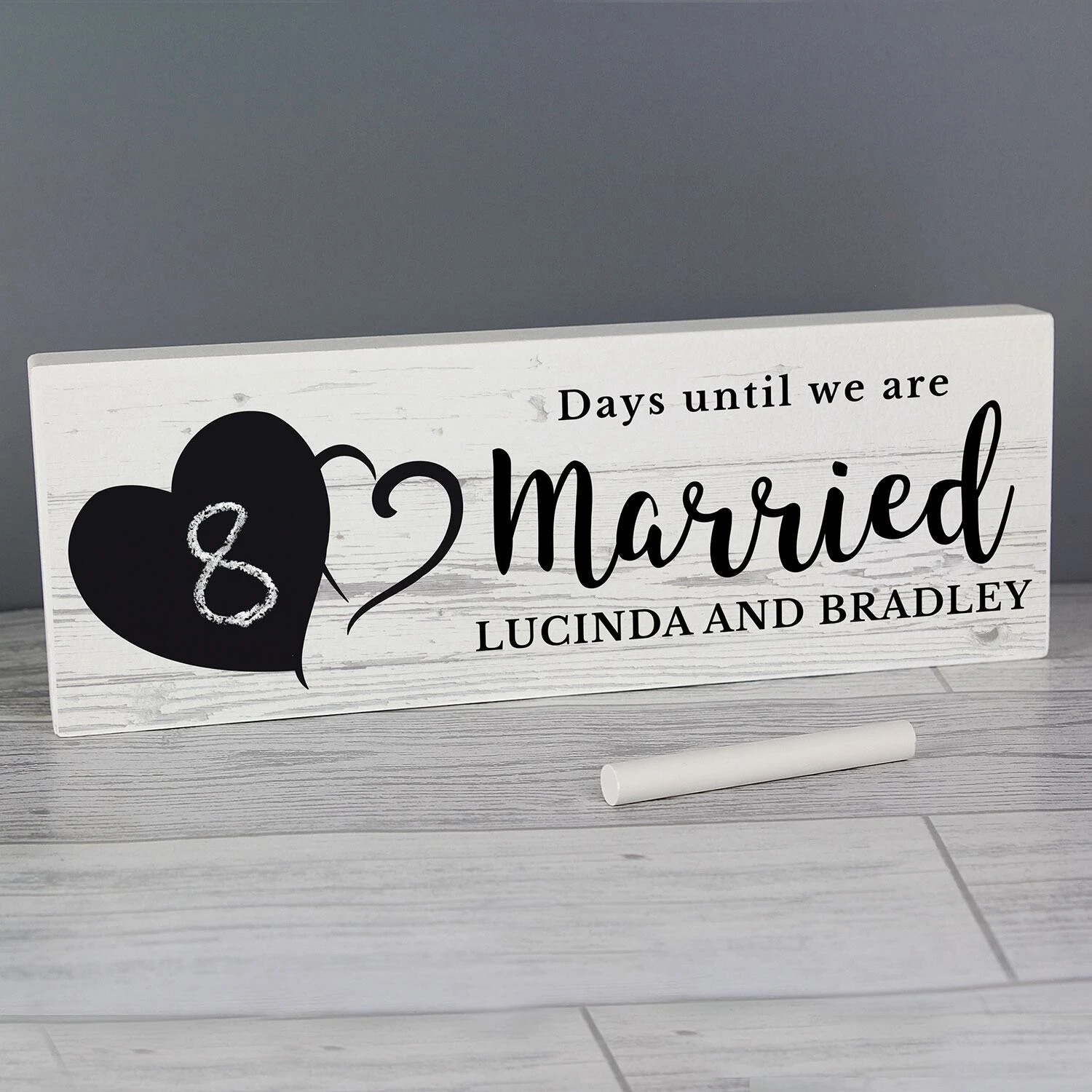 Rectangular in shape, it features a heart shaped chalkboard area which sits neatly alongside your chosen personalisation which will appear in a mix of black lettering on the right hand side of the block.Â
