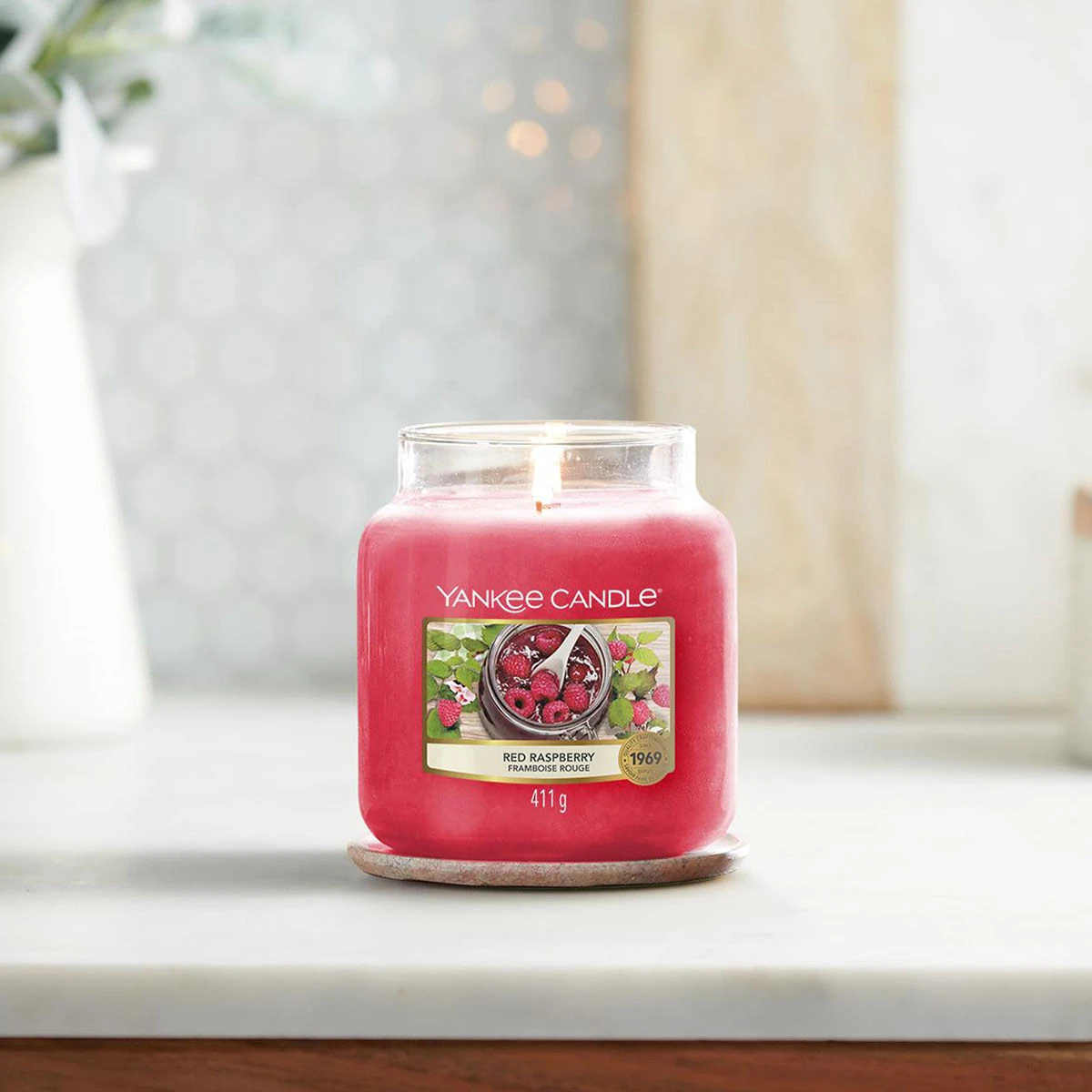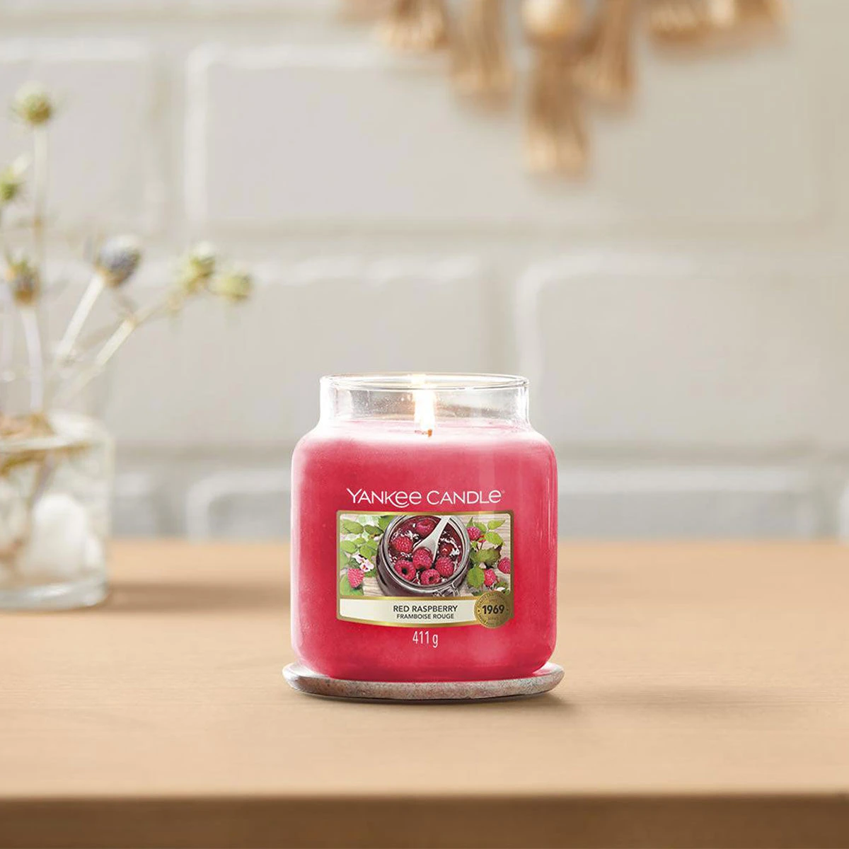 Bring a sensation of summer fruit to your home with this fragrant red candle in a glass jar from Yankee Candle.